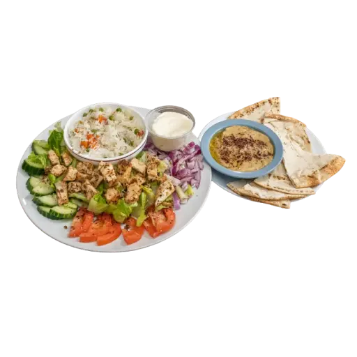 Include Mediterranean salad, hummus, basmati rice, pita & garlic sauce.