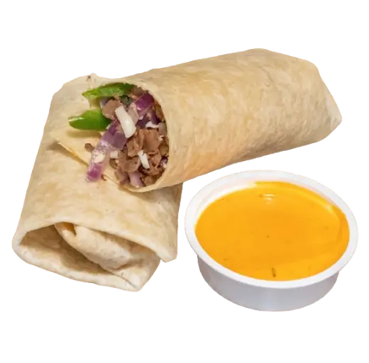 Cheddar Sauce, onions, green peppers, steak & mozzarella cheese Grilled On 12″ Tortilla